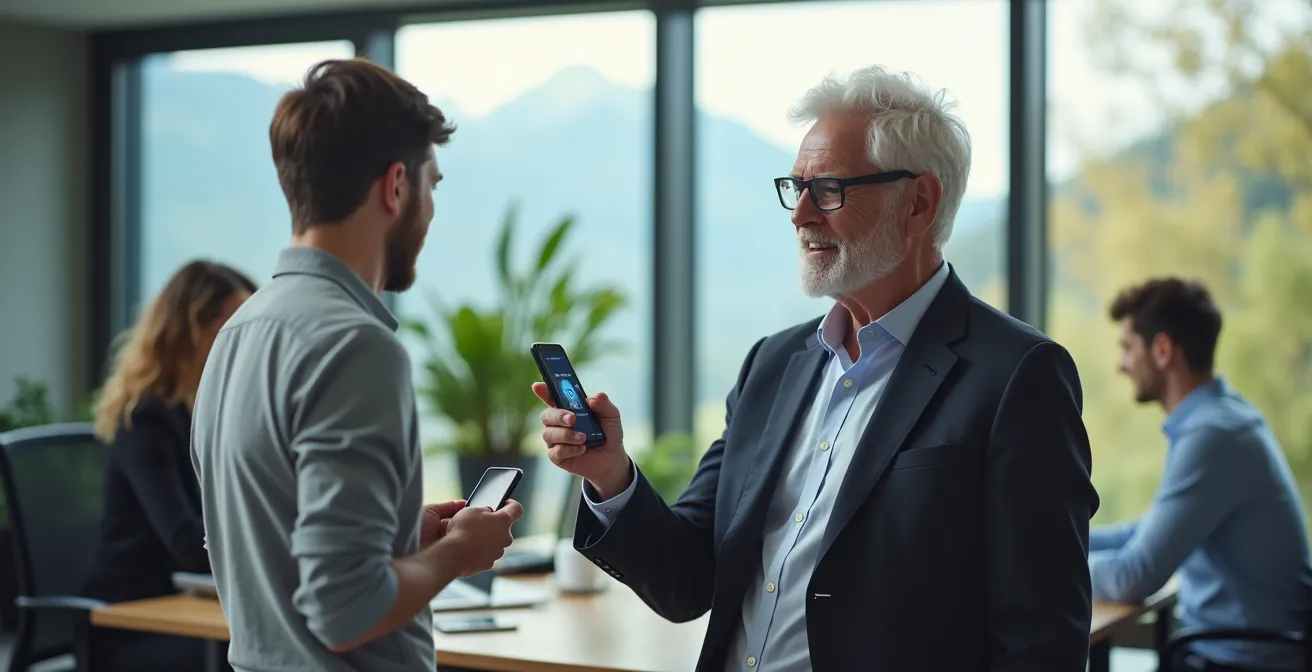 Ein äusserst erfolgreiches Modell ist das „Reverse Mentoring“. Dabei werden digitalaffine, jüngere Mitarbeiter zu „MFA-Mentoren“ ausgebildet. Sie unterstützen ihre älteren Kollegen in 1-zu-1-Sitzungen – nicht als Lehrer, sondern als hilfsbereite Partner. Diese Interaktion findet am besten in einer entspannten Atmosphäre statt, etwa bei einem Kaffee in der Cafeteria. So wird die technische Hürde zu einer Gelegenheit für den generationenübergreifenden Austausch. Das Ziel ist es, ein positives Erfolgserlebnis zu schaffen, indem die Mitarbeiter die Einrichtung auf ihrem eigenen, vertrauten Smartphone unter Anleitung durchführen.